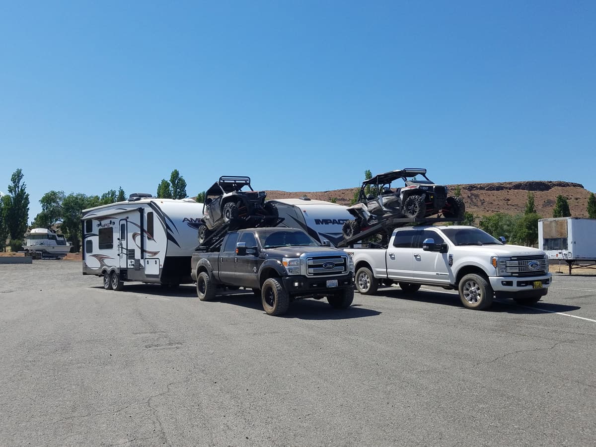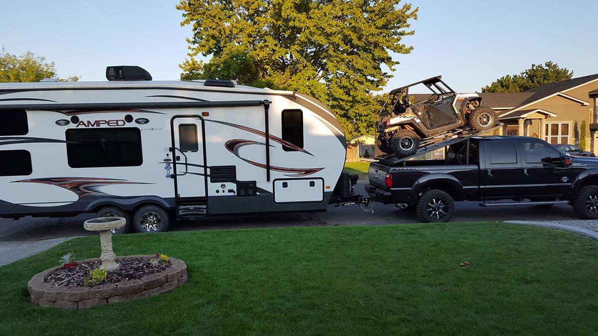 If you know anything about towing or hauling, you know that a brand-new, 30-foot, 13,000 pound toy hauler is a lot for any truck to handle. Add on a bed rack and two Polaris RZRs and things start to get real heavy, real fast.